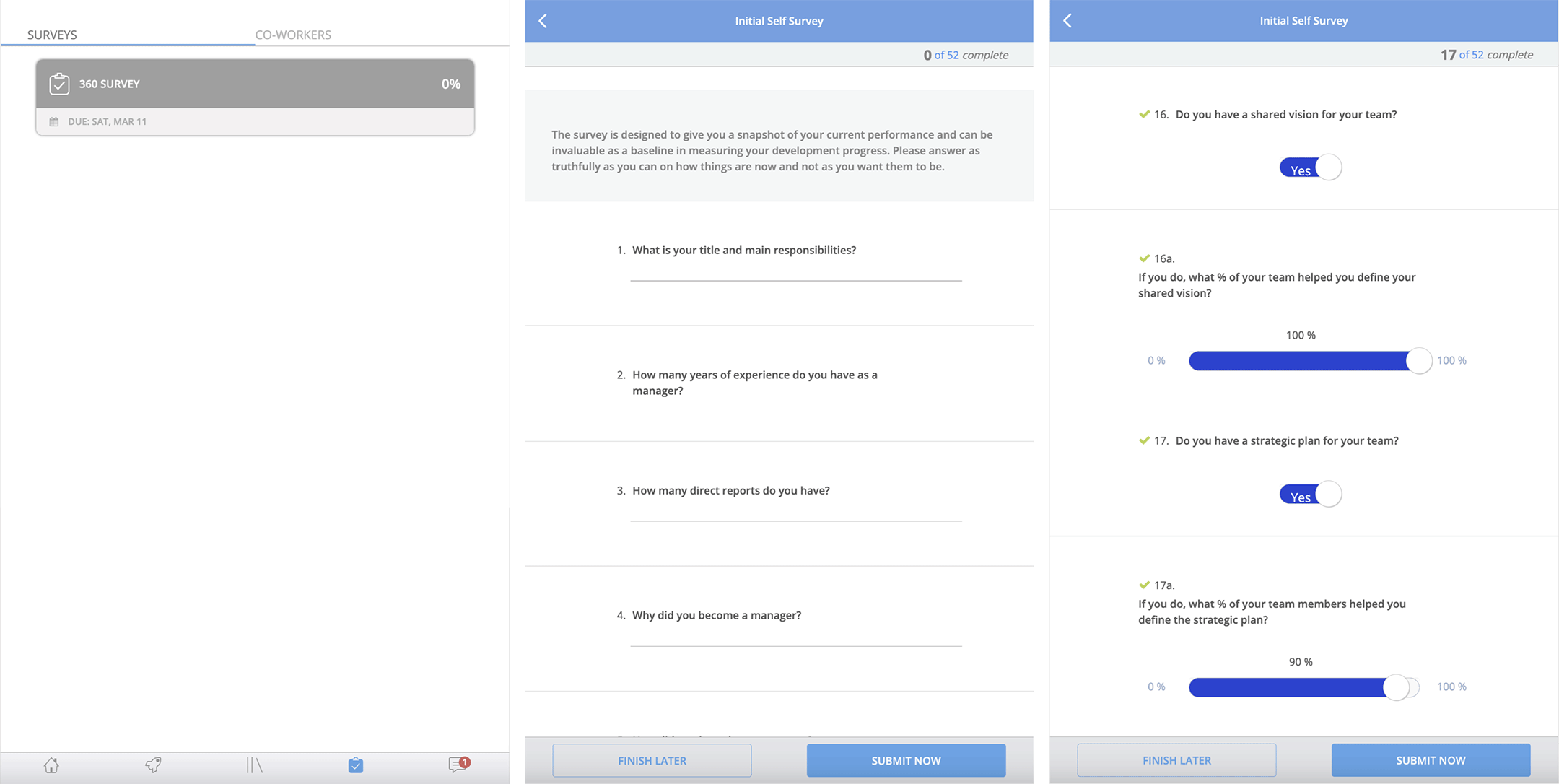 Note: Coaches were actively nudging participants to stay engaged in the 360º process through personal outreach and notifications sent via the admin panel.