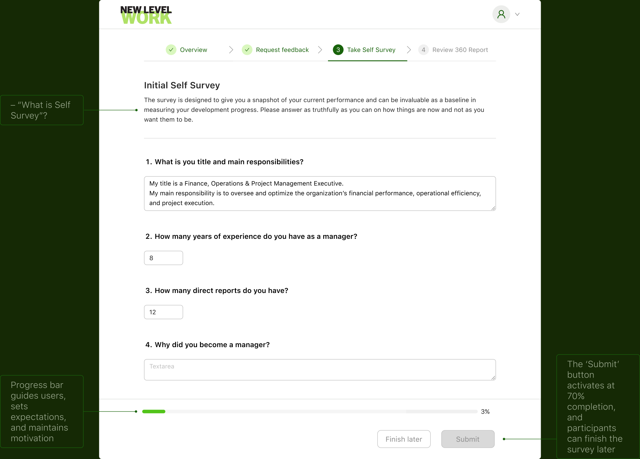 The goal was to design a self-sufficient 360º assessment informed by the best practices and insights from the current system.