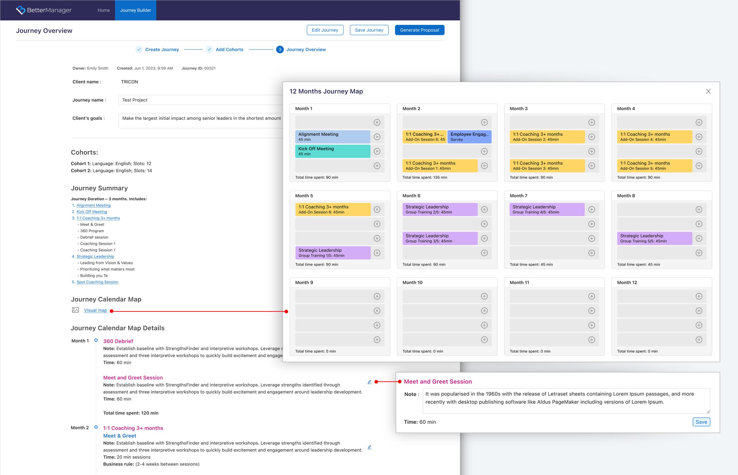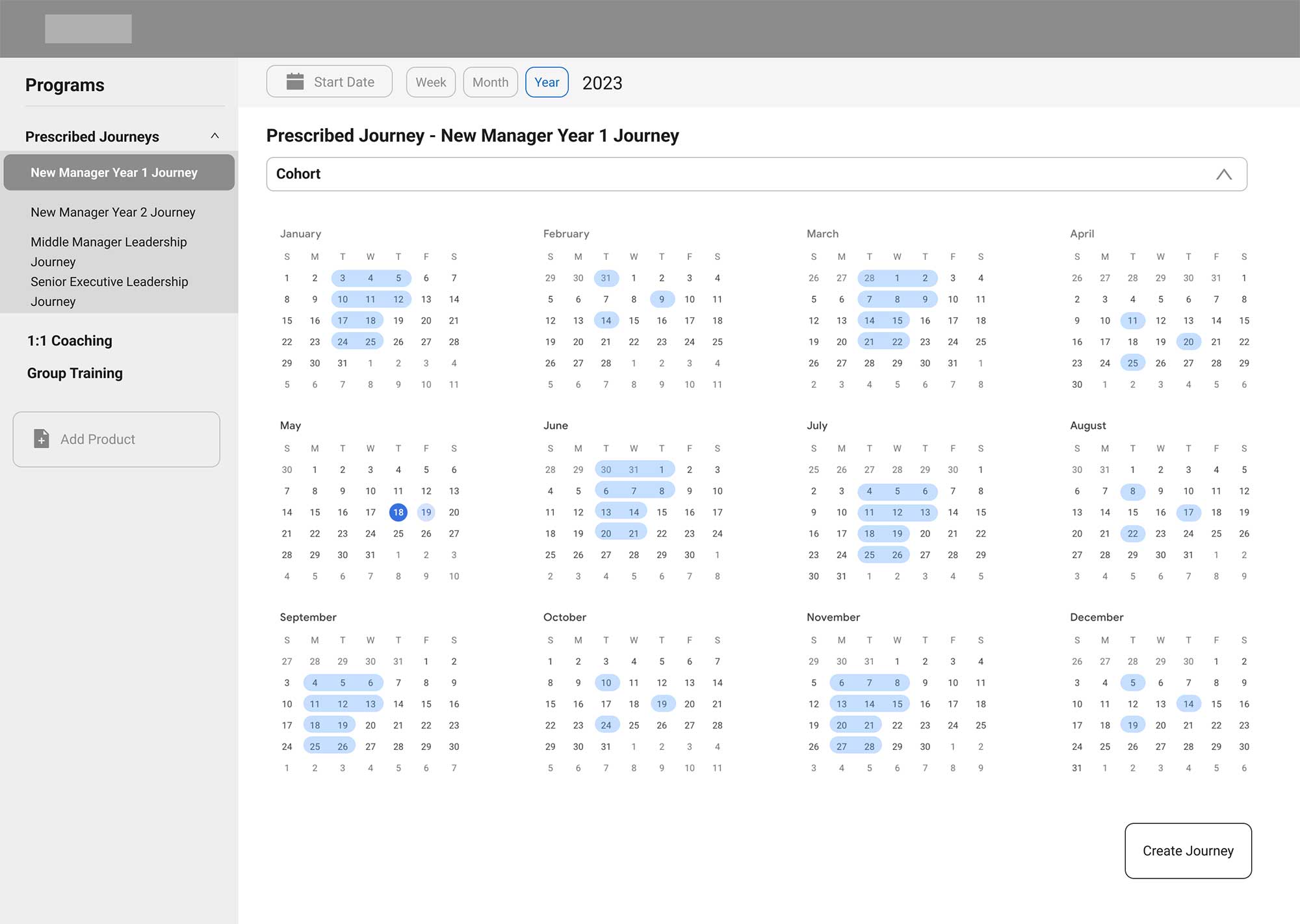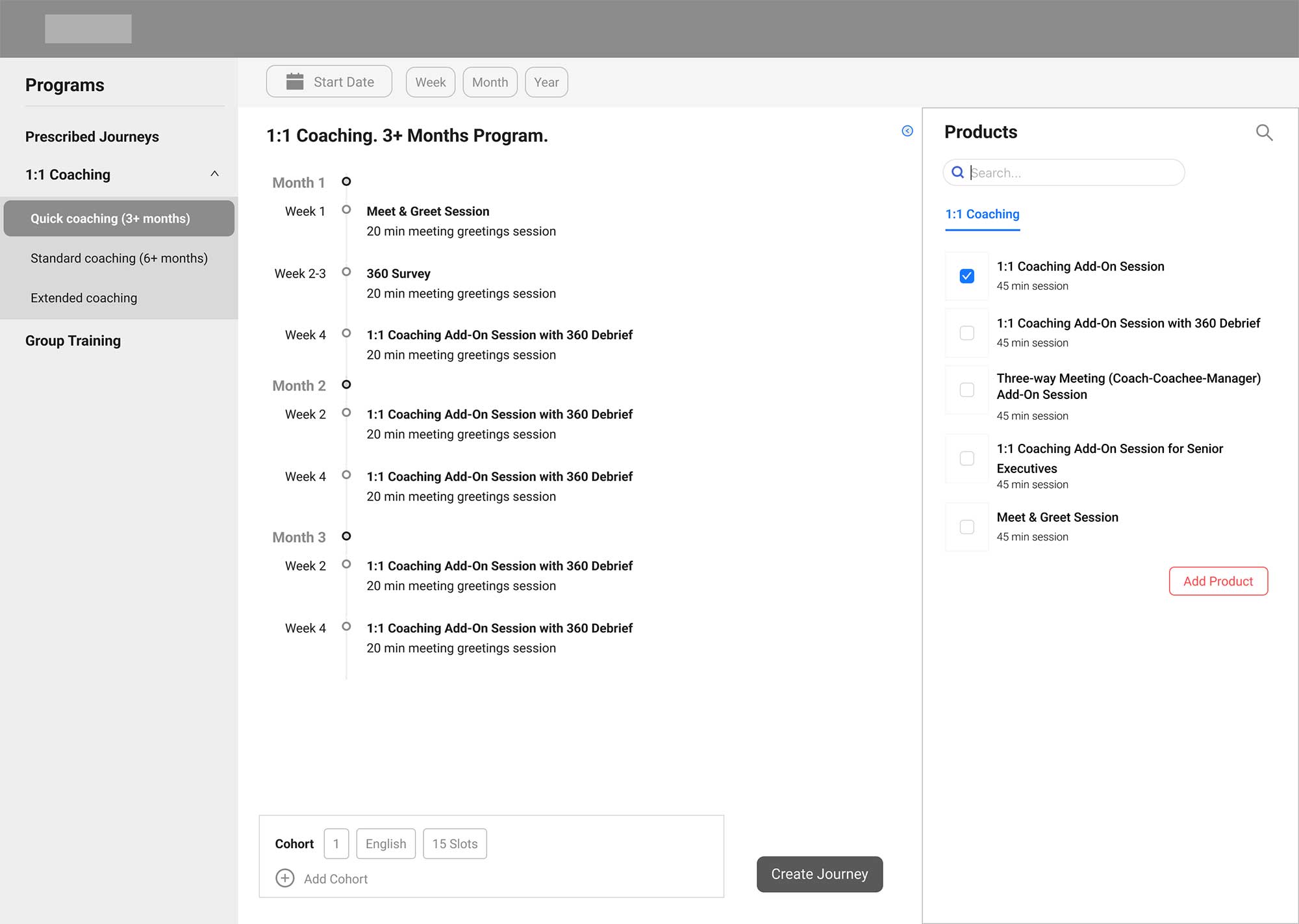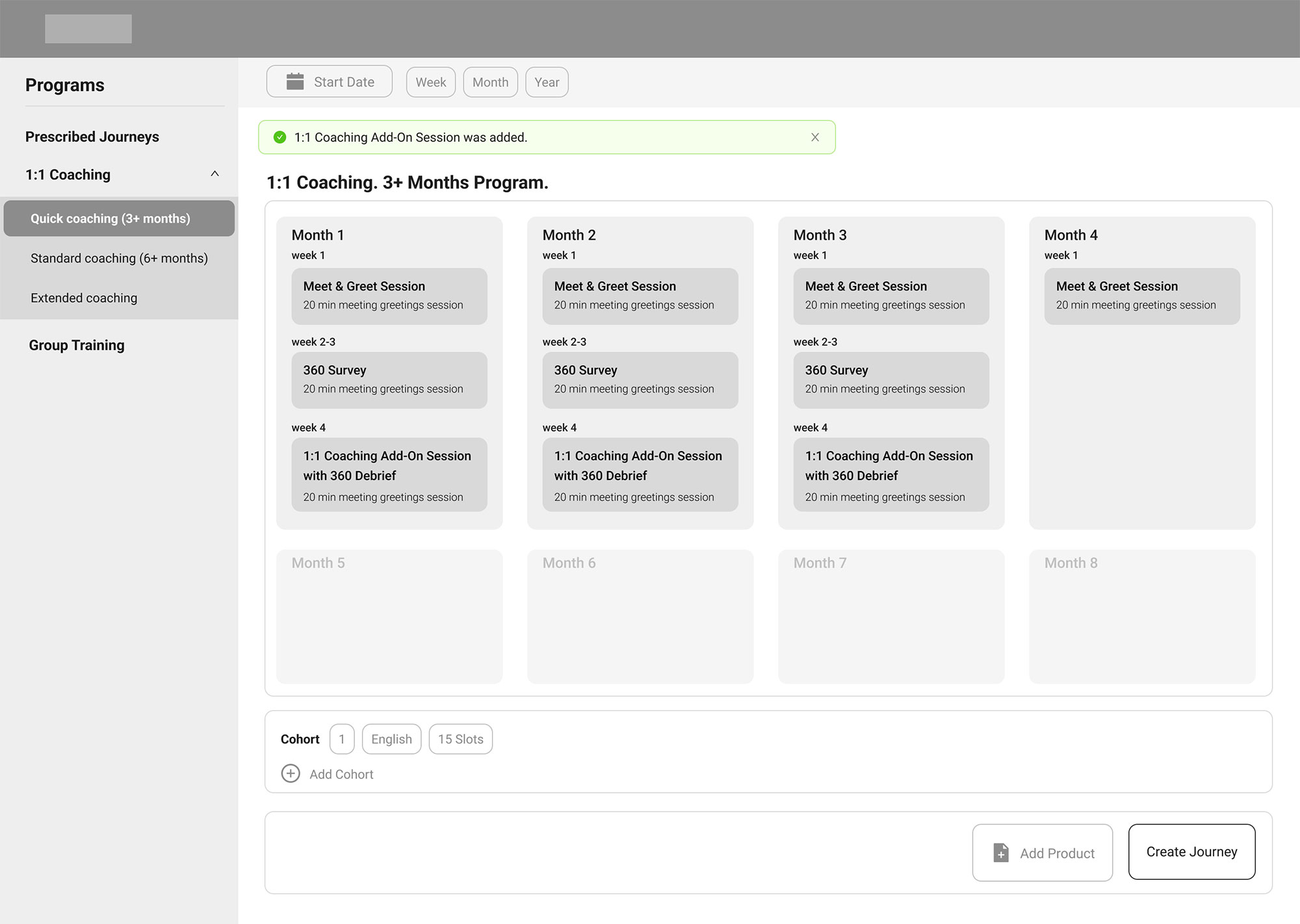 Additionally, we worked with the Program team to establish business rules. One of these rules limits users to a maximum of two items, either training or coaching sessions, per week.