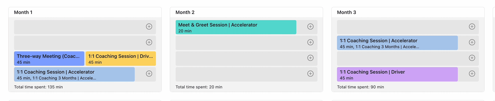 They also schedule how they’ll use the purchased services, like coaching or training, over set periods (e.g., 6, 12, or 24 months).