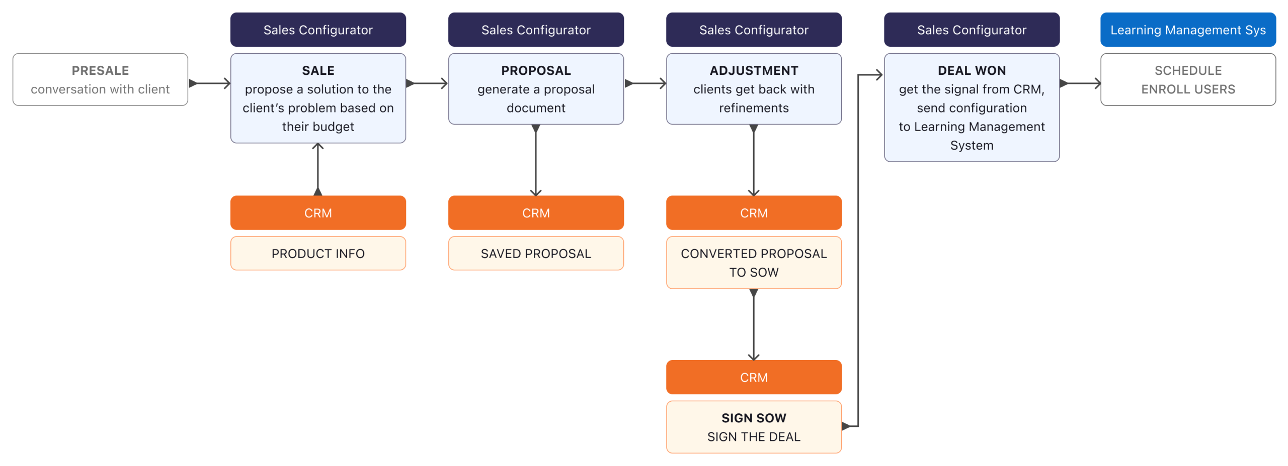The journey starts when the sales rep clicks “Take me to the Sale Configurator” in their CRM.