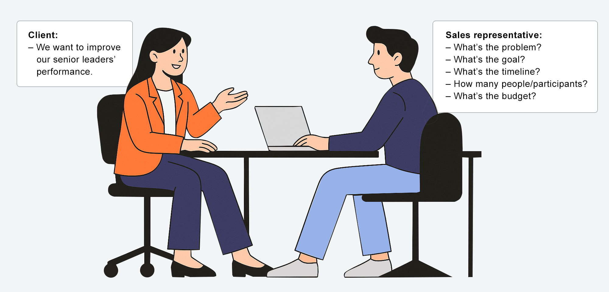 Use case: A sales representative and a client discuss the client’s needs offline.